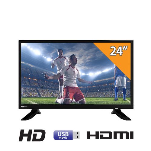 It is Movie Time or Game Time!Be immersed in true action like never before with this TV. It is especially created for you to capture more action details from your favourite matches or movies.HD (720p) ResolutionThe High Definition (HD) resolution provides a picture resolution and offers the best colors and higher picture clarity.High Definition Multimedia InterfaceThis TV is equipped with an HDMI terminal to facilitate uncompressed, all-digital video and audio connections, which supports high definition video signals and multi-channel audio signals. With HDMI, you can enjoy an ideal full-digital AV reproduction that delivers noise-free and highly precise image quality.USB MovieThe USB port in this TV allows you to connect a USB Flash drive to play and view videos, photos and music.Technical Specifications:DisplayProduct Type: D-LEDScreen Size: 24-inchAspect Ratio: 16:09Resolution (HxV): 1366 × 768Brightness (cd/m2): 160cd/ ㎡Viewing Angle (Degrees): 178°VisualVideo processing: 6bitPicture Freeze: YesPicture Mode: Standard / Mild / User /DynamicAudioSound Technology: Standard, music, movie, sports, userSpeaker Output: 6W+6WFeaturesPlayback Format: YesIntelligent AutoView: noAmbient Light Sensor: noECO Auto Power Down: YesON Timer: noSleep Timer: YesHotel Mode: YesMultilingual OSD: YesInputsRf In: Yes/DVB-T/T2video In: 1Headphone Socket (3.5mm): 1HDMI: 2USB: 2PC (Analog RGB ): YesPowerAutomatic Voltage Regulator: AC 110-240V 50/60HzPower Consumption (W): 48WStandby (W): ≤0.5WDimensions (Width x Height x Depth)Dimension Without stand: 553.2 8x 7.1 x 335.7 mmDimension with stand: 553.2 x 175.7 x 347.5 mmWeightWeight Without stand: 2.38 kgWeight with stand: 2.46 kg