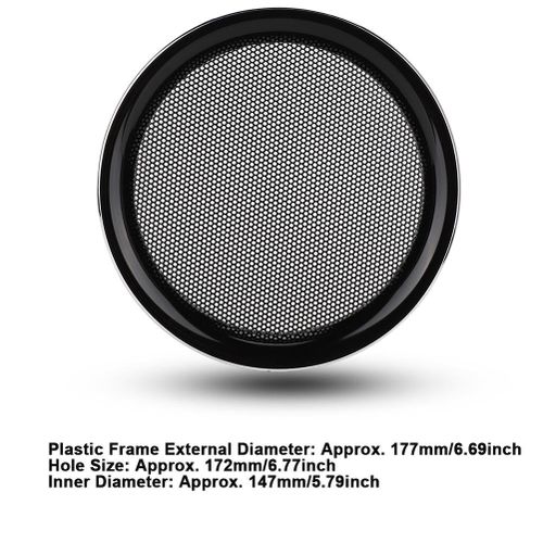 Features:Stable characteristics, professional performance, high level of accuracy.This product is made of high quality metal cold rolled steel + ABS material, strong and durable.It is very easy to install and does not require particularly complicated operations.Suitable for speakers, small speakers, car speakers.No need for screws, directly drilling the hole diameter of the speaker box 172MM, inlaid and fixed.Specification:Material: Metal cold rolled steel + ABSPlastic Frame External Diameter: Approx. 177mm/6.69inchHole Size: Approx. 172mm/6.77inchInner Diameter: Approx. 147mm/5.79inchColor: As is shown on the photoPackage List:2 x Sound CoverNote:This mesh cover is not available for every speaker. Please check the product size carefully before purchasing.Drill holes directly into the speaker cabinet without screws, inlaid and fixed.