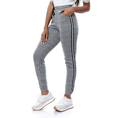 Giro بنطلون كارو باستك على الوسط ورباط للتضييق خطين من الجانبين و كوت في الرجل – رمادي