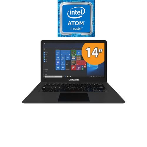 Ultra-Thin Design.Stylish and easy to carry, the N14B boasts a sleek, ultra thin design. The 14-inch Display offer vivid and realistic images with outstanding clarity and the Ctroniq N14B laptop runs on Windows 10 operating system that is renowned for its fluid user interface.Intel InsideThe N14B comes with a Intel Cherry Trail T3-Z8350 processor inside, allowing for great CPU performance and graphics capabilities.Optimised Next Generation VisualIntel HD Graphics Card provides crisp details promising an emersive viewing expereince be it processing images or watching HD videos.Front CameraUnlike most notebook computers the N14B has a camera positioned near the bottom left of the screen. This unique feature lends to the clean layout of the laptop.Powerful batteryThis laptop is equipped with a powerful battery that delivers a video playback time of up to 3 hours.Plug in to all your devicesConnect to your other digital devices through fast USB ports or an HDMI port. For quick and easy file transfers, there is also an MicroSD card reader.Technical Specifications:ProcessorIntel Atom® x5-Z8350 Processor, 1.44 GHz (2M Cache, up to 1.92 GHz, # of Cores: 4)MemoryInstalled Memory: 2GB LPDDR3Display14.0-inch HD (1366 x 768) LED-Backlit DisplayGraphicsIntel® HD Graphics shared graphics memoryStorageHard Drive: 32 GB eMMCOptical DriveNoInputs and Outputs1 x Mini HDMI1 x USB 3.01 x USB 2.01 x Power1 x Micro SD Card Reader1 x Headphone/Microphone JackHardwareAudio and Speakers: Stereo speakers, Built-in microphoneFront Camera: 0.3 MPWireless/NetworkingWi-Fi Adapter: 802.11 b/g/n Wi-FiBluetooth® Technology: Bluetooth 4.0SoftwareOperating System: Microsoft® Windows® 10 Home 64-bitPowerBattery: 8000mAh Battery (Integrated)A/C Adapter: AC 100-240V / DC 5V/2.5ABodyDimensions: 329 x 219 x 20 mm