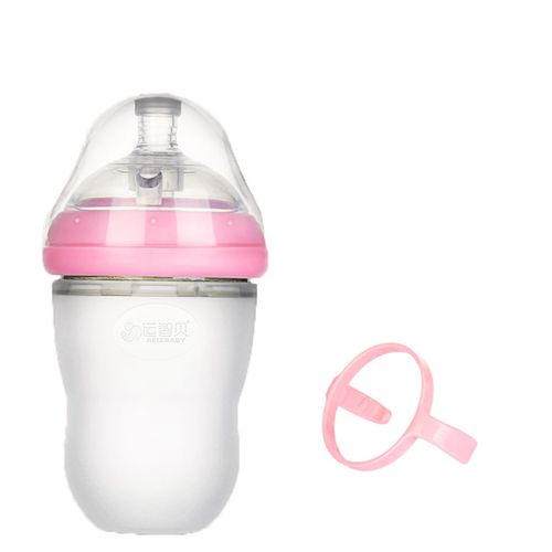 Material Food grade Silicone Size 120ml\\ 220ml Theme Pink \\ Green Color Function Feeding Bottle Product Feature 1. Soft silicone material , easy to squeeze, convenient for feeding baby 2. Suitable capacity, keep milk and juice fresh to drink 3. Anti-hot material, easy for mommy to notice the temperature of food 4. Handle design, easy for baby to hold Package 1 * feeding bottle (with handle)