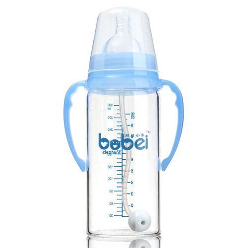 introduction: size:9*19cm shape:straight handle:have handle material:glass capacity:300ml nipple size:Y fit age:all ages Feature: 1.High temperature resistance 2.safe and non-toxic 3.BPA frees