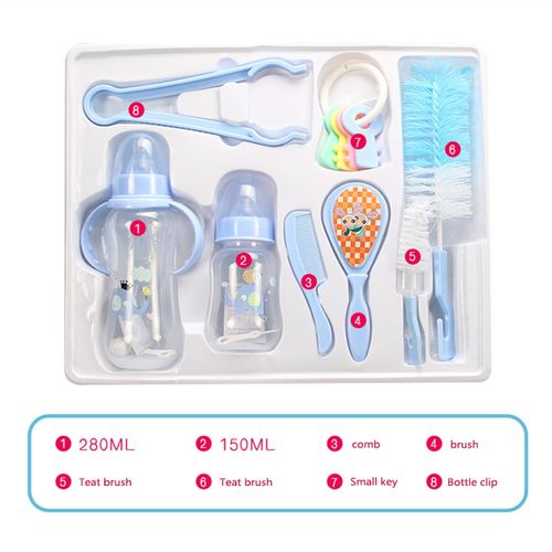 Features: – PP material, tasteless, non-toxic, and will not leakage. – Easy open flip top lid revealing straw, convenient for baby to open and have water, and flip down to seal in liquids making leak proof, and stay clean. – Package content: – 1 x 150ml Bottles – 1 x 280ml Bottles – 1 x Comb – 1 x Key – 1 x Bottle Tong – 3 x Brushes Specifications: – Material: PP,silicone – Capacity: 150ml/ 280ml Notes: 1. Manual measuring, please allow 1 ~ 3mm error,thank you. 2. Due to the difference between different monitors, the picture may not reflect the actual color of the item. We guarantee the style is the same as shown in the picture.