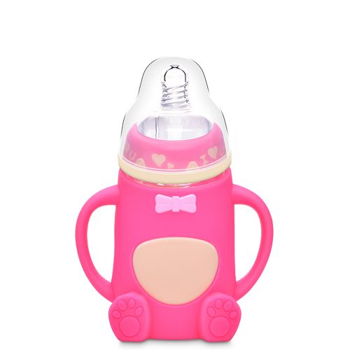 Our bottles are designed with a naturally shaped nipple to help your little one make a easy transition from breast to bottle. Feature two anti-colic air vents to ensure air circulation to reduce unwanted colic, spit up, burping and gas. One bottle meets different needs. It also can be used as the drink bottle through working with the drinking straw, very convenient.Features:The bottle is 45 degree arc design, creating a more natural bottle feeding experience.Nipple is made of 100 safe & soft silicone material and adopts spiral design, easy for baby to suck and drink. High borosilicate glass bottle, safe & non-toxic, high temperature resistance, not easy to be broke.Ergonomic bottle is designed with safe silicone cup case, shock resistance, anti-explosion, non-slip and anti-scald. Dual anti-colic vents prevent unwanted air-intake and reduce colic, ergonomic handle is easy to grip.Ultra wide-neck design allows easy cleaning by hand and easy pouring into milk powder and water.One bottle meets different needs. It also can be used as the drink bottle through working with the drinking straw, very convenient.Specifications:Material: Glass Bottle+Silicone Cup CaseStyle: Style 1, Style 2 (Optional)Color: * Style 1: Turquoise, Coffee, Rose Red (Optional)* Style 2: Pink, Rose Red, Violet Blue, Turquoise (Optional)Bottle capacity: 240mlPackage size: 168 * 120 * 50mm / 6.61 * 4.72 * 1.97inPackage weight: 400g / 14.11ounceNote: Due to the different monitors and light effects, the actual color of the product maybe a slightly different from the picture color, thank you for your understanding.Package List:1 * Baby Bottle1 * Drinking Straw