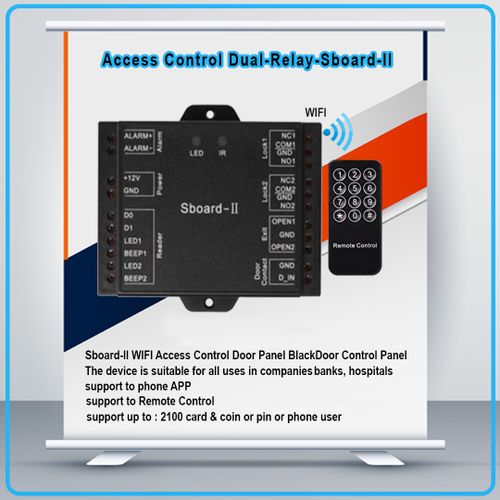 Sboard-ll WIFI Access Control Door Panel BlackDoor Control Panel (Log in and exit)The possibility of connecting a wiegond readerPossibility to connect keypad2100 usersIncludes remote controlThe possibility of opening the door by telephone (WIFI)