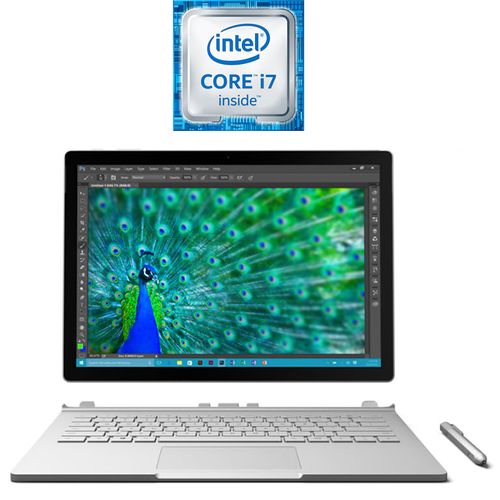 Surface BookUltra-thin, meticulously crafted, with incredible screen resolution. This is the ultimate laptop.The ultimate laptop.We all have greatness in us. And with the right tools, there are no limits. Be bold. Inspire. Do something special. Introducing the ultimate laptop, Surface Book. Ultimate versatility.Surface Book transforms into three different configurations, adapting to the way that you work and the places where you create.Powerful laptopThe first full laptop has arrived in the Surface family. Surface Book is a powerful laptop with a full sized, backlit keyboard for fast and natural typing. Portable clipboardThe 13.5\" PixelSense™ display detaches easily from the keyboard to become a thin, light tablet that works perfectly with OneNote and Surface Pen. Creative canvasTurn the screen around and reattach it to use Surface Book like a creative canvas. By reconnecting it to the keyboard, you unlock its full creative power in a pen first mode.Ultimate performance.Surface Book is built to be a creative workhorse. Combining a 6th Gen Intel® Core™ i5 or i7 processor with up to 16GB of memory and an optional discrete graphics chip.Graphic horsepowerWith an optional discrete graphics chip, Surface Book is built for even the most intensive creative tasks. Serious creativityUse the multi-touch PixelSense™ screen and Surface Pen to create with all the desktop software you already use, like Adobe® Photoshop® and Illustrator. Mobile studio Surface Book is the creative professional\'s laptop, designed to power through professional grade photo and video editing.Runs Windows & Office perfectly.The best Windows ever, with lots of new features you\'ll love. Like innovations in security, personalization, and productivity.Full OfficeSurface Book works perfectly with the full suite of Office products, driving your productivity to new heights. Markup webpagesWrite directly on webpages with Surface Pen in the all-new Microsoft Edge browser and share your notes easily. Limitless appsSurface Book has all the power you\'ll need for even the most demanding creative apps. Use Adobe® software with a pen or mouse. Meticulously crafted.Surface Book\'s one-of-a-kind hinge folds and detaches to transform from laptop, to clipboard mode, and then into a creative canvas.One click to CortanaClick and hold the top of Surface Pen to activate Cortana, your truly personal digital assistant.One click to OneNoteWith one click of Surface Pen, a blank OneNote page appears for quick notes.Rest your handWith Palm Block technology you can rest your hand on the screen to write naturally, just like a pad of paper.Detachable Keyboard.Surface Book uses Muscle Wire® to hold its screen in place securely, while still allowing it to detach perfectly with the push of a button.PixelSense™Our PixelSense™ is a true-to-life screen technology designed for beauty, touch and pen.Natural writing experience.Surface Pen combines 1024 levels of pressure sensitivity with low latency for a real pen on paper feeling.Surface Book in action.Thavius Beck brings Surface Book into his creative process to make his music. Use it like a clipboard.Grab your screen and go. Surface Book\'s screen detaches so you can take it anywhere.Ideas in action.Use it as an awesomely powerful laptop to bring your ideas to life.Creative powerhouse.See how Jordan Crane uses Surface and the power of full desktop software to perfect his illustrations.Technical Specifications:Processor6th Generation Intel® Core™ i7-6600U Processor, 2.6GHz (4M Cache, up to 3.4 GHz, # of Cores: 4)MemoryInstalled Memory: 16GB RAM LPDDR3 SDRAMDisplayScreen: 13.5” PixelSense™ DisplayResolution: 3000 x 2000 (267 PPI)Aspect ratio: 3:2Surface Pen enabledTouch: 10 point multi-touchGraphicsGraphics Processor: NVIDIA GeForce 940MGraphics Video RAM: 1 GB GDDR5 SDRAMStorageHard Drive: 512 GB Solid state drive (SSD)Inputs and Outputs2 x USB 3.0 Headphone/microphone combo jackMini DisplayPort2 x Surface ConnectMemory Card Reader (SD Card, SDHC Card, SDXC Card)CameraWindows Hello face sign-in camera8 Megapixel (rear), 5 Megapixel (front) HD camera (front-facing)Audio and SpeakersStereo speakers, two microphonesWireless/NetworkingWi-Fi: IEEE 802.11 a/b/g/n/ac compatibleBluetooth Wireless 4.0 technologySensorsAccelerometer, ambient light sensor, magnetometer, gyro sensor, hall sensorSoftwareOperating System: Windows 10 ProfessionalSecurityTPM chipEnterprise-grade protection with Windows Hello face sign-inExteriorExterior Casing: Magnesium alloyColor: SilverPhysical buttons: Volume, PowerBatteryBattery Life: Up to 12 hours of video playbackBodyDimensions: 12.3 in x 9.1 in x 0.9 inWeight: 3.47 lbs