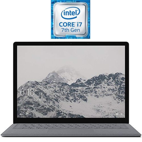 Work and play your wayDo the things you want on Surface Laptop with protection you can count on and performance that lasts, with Windows 10. Get work done with Office all day, listen to iTunes or Spotify, and unwind with your favorite shows on Netflix and Hulu.Rich color combinationsGo beyond the traditional laptop. Complement your style with rich, tone-on-tone color combinations³ and a clean, elegant design that fits easily in your bag.Beautifully designed and craftedSurface Laptop provides the blend of texture, subtle details, and clean, elegant lines—plus the luxurious touch of our Signature Alcantara® material-covered keyboard.Innovative styleThe keyboard is covered in stunning Alcantara®, an innovative material sourced in Italy. Used in other high-end luxury goods, Alcantara® ages beautifully.Luxuriously durableWonderfully soft and incredibly durable, our Alcantara® covered keyboard is treated with a high-performance polyurethane coating to resist spills.Easy to care forLike most of your favorite things, your Surface will look its best with regular care. To keep the keyboard looking new, simply wipe clean with a damp lint-free cloth.The perfect balance of portability and performanceYou don\'t have to choose between power and traveling light. Starting at just 2.76 pounds, Surface Laptop (1st Gen) gives you an ideal balance of both, plus all-day battery life – up to 14.5 hours.1A stunning screen that responds to your touchExperience faster, more natural navigation on the vibrant 13.5\" PixelSense Display with immersive touchscreen. Enjoy more space for your ideas with an edge-to-edge display and ultra-thin bezel.Technical Specifications:Processor7th Generation Intel® Core™ i7-7660U Processor, 2.5 GHz (4M Cache, up to 4.0 GHz, # of Cores: 4)MemoryInstalled Memory: 16GB RAMDisplayScreen: 13.5” PixelSense™ DisplayResolution: 2256 x 1504 (201 PPI)Aspect ratio: 3:23.4 million pixelsSurface Pen4 enabledTouch: 10 point multi-touchCorning® Gorilla® Glass 3GraphicsGraphics Processor: Intel® Iris™ Plus Graphics 640 (i7)Graphics Video RAM: SharedStorageHard Drive: 512 GB Solid state drive (SSD)Inputs and OutputsUSB 3.0Headset jackMini DisplayPortSurface ConnectCompatible with Surface Dial off-screen interaction4CameraWindows Hello face sign-in camera720p HD camera (front-facing)Audio and SpeakersStereo microphonesOmnisonic speakers with Dolby® Audio™ Premium3.5mm headphone jackWireless/NetworkingWi-Fi: IEEE 802.11 a/b/g/n/ac compatibleBluetooth Wireless 4.1 technologySensorsAmbient light sensorSoftwareOperating System: Windows 10 SSecurityTPM chipEnterprise-grade protection with Windows Hello face sign-inExteriorExterior Casing: AluminumColor: PlatinumPhysical buttons: Volume, PowerBatteryBattery Life: Up to 14.5 hours of video playbackBodyDimensions: 308.1 mm x 223.27 mm x 14.48 mmWeight: 1,283 gIn the boxSurface LaptopPower SupplyQuick Start GuideSafety and warranty documents