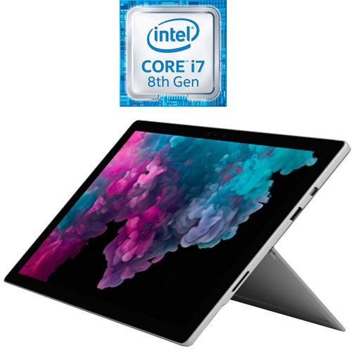 Microsoft combines the portability of a tablet and the performance of a laptop with the Surface Pro 6.Weighing just 1.71 pounds and measuring just 0.33\" thin, the Surface Pro 6 packs an 8th Gen Coffee Lake 1.9 GHz Intel Core i7-8650U processor into a magnesium casing with a platinum finish. Use the multi-position Kickstand and the Surface Pro Type Cover (sold separately) to turn the Surface Pro into a laptop. The updated Surface Pen (sold separately) provides up to 4096 levels of pressure sensitivity while the Surface Dial (also sold separately) allows for on-screen interactions.The Surface Pro 6 features a 12.3\" PixelSense display with a 2736 x 1824 screen resolution (267 ppi) and a 3:2 aspect ratio. The display also supports 10-point touch, so you can take full advantage of the multi-touch gestures incorporated into Windows 10 Home. If you want to play video on an external display, you can do so using the Mini DisplayPort output.The 8th Gen Intel Core i7-8650U processor has a base clock speed of 1.9 GHz and can be boosted up to 4.2 GHz when performing demanding tasks. It also has integrated Intel UHD Graphics 620. The Surface Pro 6 has 16GB of LPPDR3 1866 MHz RAM, a 512GB SSD, a microSDXC card slot, Wi-Fi 5 (802.11ac), Bluetooth 4.1, a 5MP front-facing camera with Windows Hello face authentication sign-in, an 8MP rear-facing camera with 1080p HD video recording and autofocus, and dual integrated microphones for Cortana, Microsoft\'s intelligent assistant. There are also built-in stereo speakers with Dolby audio. Windows 10 Home is the installed operating system.Surface Pro 612.3\" PixelSense 10-Point Multi-Touch DisplayFeaturing a 2736 x 1824 screen resolution with 267 pixels per inch, the 12.3\" PixelSense display provides a high-res, clear viewing experience. Use the multi-position Kickstand for a hands-free way to watch movies. The display is also a touchscreen, so you\'ll be able to utilize the multi-touch gestures incorporated into Windows 10 Home. You can also output video to an external display via Mini DisplayPort.Intel Dual-Band 802.11ac Wi-FiFeaturing Intel dual-band 802.11ac Wi-Fi, the Surface Pro 6 delivers faster internet access, broader coverage, and longer battery life than was available with previous Wi-Fi standards. The Surface Pro is also backwards compatible with 802.11a/b/g/n Wi-Fi networks. The Surface Pro also comes with Bluetooth 4.1, so you\'ll be able to connect wirelessly to Bluetooth-compatible peripherals and accessories.The Portability of a TabletWeighing in at 1.71 pounds and measuring 0.33\" thin, the Surface Pro can be used in classes, at meetings, or on the road. The bright, responsive touchscreen and the high-quality speakers with Dolby audio provide an immersive viewing experience, while the front 5-megapixel camera allows you to video chat with friends and family in high resolution.Technical Specifications:Processor8th Generation Intel® Core™ i7-8650U Processor, 1.9 GHz (8M Cache, up to 4.2 GHz, # of Cores: 4)MemoryInstalled Memory: 16GB RAMDisplayScreen Size: 12.3-inchResolution: 2736 x 1824 (267 PPI)Technology: PixelSense™Touch: 10-point multi-touchAspect Ratio: 3:2GraphicsGraphics Processor: Intel® HD Graphics 620Graphics Video RAM: SharedStorageHard Drive: 512GB Solid state drive (SSD)Inputs and Outputs1 x Full-size USB 3.0Mini DisplayPort3.5mm Headphone jackmicroSDXC card readerSurface ConnectCover portCamera5.0MP front-facing camera with 1080p Skype HD video8.0MP rear-facing autofocus camera with 1080p Full HD videoAudio and Speakers1.6W Stereo speakers with Dolby® Audio™ PremiumDual microphonesWireless/NetworkingWi-Fi: IEEE 802.11 a/b/g/n/ac compatibleBluetooth Wireless 4.1 technologySensorsAmbient light sensorAccelerometerGyroscopeSoftwareOperating System: Windows 10 HomeBatteryBattery Life: 4-Cell Built-In Lithium-IonProviding up to 13.5 Hours per Charge (46.5 Wh)BodyDimensions: 29.2 x 20.1 x 0.8 cmWeight: 0.78 kgIn the boxSurface ProPower SupplyQuickstart guide