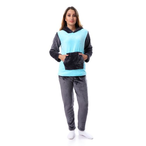 Andora Bi-Tone Fur Zipped Pajama Set – Sky Blue & Dark Grey