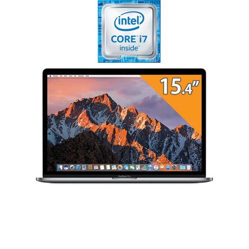A touch of genius.It’s razor thin, feather light, and even faster and more powerful than before. It has the brightest, most colorful Mac notebook display ever. MacBook Pro is built on groundbreaking ideas. And it’s ready for yours.Touch Bar and Touch ID: A revolutionary new way to use your Mac.The Touch Bar replaces the function keys that have long occupied the top of your keyboard with something much more versatile and capable. It changes automatically based on what you’re doing to show you relevant tools you already know how to use — system controls like volume and brightness, interactive ways to adjust or browse through content, intelligent typing features like emoji and predictive text, and more.Performance: Speed-of-the-art.MacBook Pro elevates the notebook to a whole new level of performance and portability. Wherever your ideas take you, you’ll get there faster than ever with cutting-edge graphics, high-performance processors, whip-smart storage, and more.Retina Display: The brightest, most colorful Mac notebook display ever.The display in the MacBook Pro is the best ever in a Mac notebook. It features bright LED backlighting and a high contrast ratio, delivering deep blacks and bright whites. Its large pixel aperture and variable refresh rate make it power efficient. And it supports wide color for even more vibrant greens and reds than with sRGB. This makes for more true-to-life pictures with realistically vivid details – essential for graphic design, color grading, and editing.Speakers that speak for themselves. Loudly.Enjoy beautifully balanced, high-fidelity sound that takes listening to new levels with wide dynamic range and more bass for maximum boom. The speakers are connected directly to system power, enabling greater peak amplification. So they make MacBook Pro the perfect choice for mixing a track on the fly, editing video on location, or enjoying a movie on the go.Keyboard and Trackpad: More responsive keyboard. More expansive trackpad.Interacting with MacBook Pro is a smooth experience all around. The keyboard features our second-generation butterfly mechanism – providing four times more key stability than a traditional scissor mechanism, along with greater comfort and responsiveness. And the spacious Force Touch trackpad gives your fingers plenty of room to gesture and click.Thunderbolt 3: The most powerful and versatile port ever.Thunderbolt 3 combines ultra-high bandwidth with the ultra-versatility of the USB-C industry standard to create one revved-up universal port. It integrates data transfer, charging, and video output in a single connector, delivering up to 40Gb/s of throughput for twice the bandwidth of Thunderbolt 2. Both sizes of MacBook Pro are available with four ports, so you can do all that from either side. Existing devices are easily connected with a cable or adapter. And Thunderbolt 3 is reversible, so no matter how you plug in, it’s always right side up.macOS: It’s why there’s nothing else like a Mac.macOS is the operating system that powers every Mac. It’s engineered to take full advantage of the hardware and designed to be as easy to use as it is beautiful to look at. macOS includes an amazing collection of apps you’ll use — and love — every day. It also features iCloud and other innovative ways for your Mac, iOS devices, and Apple Watch to work together.Technical SpecificationsDisplay15.4-inch (diagonal) LED-backlit display with IPS technology2880-by-1800 native resolution at 220 pixels per inch with support for millions of colorsSupported scaled resolutions: 1920 by 1200, 1680 by 1050, 1280 by 800, 1024 by 640500 nits brightnessWide color (P3)Processor2.9GHz quad-core Intel Core i7, Turbo Boost up to 3.9GHz, with 8MB shared L3 cacheMemory16GB of 2133MHz LPDDR3 onboard memoryStorage1TB PCIe-based onboard SSDGraphicsRadeon Pro 555 with 2GB of GDDR5 memory and automatic graphics switchingIntel HD Graphics 630Video SupportSimultaneously supports full native resolution on the built-in display at millions of colors andUp to two displays with 5120-by-2880 resolution at 60Hz at over a billion colorsUp to four displays with 4096-by-2304 resolution at 60Hz at millions of colorsUp to four displays with 3840-by-2160 resolution at 60Hz at over a billion colorsThunderbolt 3 digital video outputNative DisplayPort output over USB‑CVGA, HDMI, and Thunderbolt 2 output supported using adapters (sold separately)Camera720p FaceTime HD cameraCharging and ExpansionFour Thunderbolt 3 (USB-C) ports with support for: Charging, DisplayPort, Thunderbolt (up to 40 Gbps), USB 3.1 Gen 2 (up to 10 Gbps)HeadphoneWireless802.11ac Wi-Fi wireless networkingIEEE 802.11a/b/g/n compatibleBluetooth 4.2 wireless technologyAudioStereo speakers with high dynamic rangeThree microphones3.5 mm headphone jackKeyboard and TrackpadFull-size backlit keyboard with: 64 (U.S.) or 65 (ISO) keys including 4 arrow keys (English Only, No Arabic Letters Engraved)Ambient light sensorForce Touch trackpad for precise cursor control and pressure-sensing capabilities: enables Force clicks, accelerators, pressure-sensitive drawing, and Multi-Touch gesturesTouch BarTouch Bar with integrated Touch ID sensorOperating SystemmacOS SierraPower and BatteryBuilt-in 76.0-watt-hour lithium-polymer battery61W USB-C Power AdapterUp to 10 hours wireless webUp to 10 hours iTunes movie playbackUp to 30 days of standby timeUSB-C power portSize and WeightHeight: 1.55 cmWidth: 34.93 cmDepth: 24.07 cmWeight: 1.83 kgIn the Box15-inch MacBook Pro87W USB-C Power AdapterUSB-C Charge Cable (2 m)