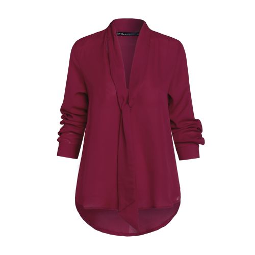 Celmia Women Bowknot Bandage V-neck Long Sleeve Top Blouse