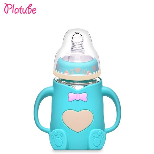 Generic Baby Silicone Milk Feeding Bottle Infant Juice Water Feeding Bottle Cup Glass Nursing Feeder Baby Bottle(Blue)Bébé Silicone lait biberon infantile jus eau biberon tasse verre allaitement biberon(Blue)