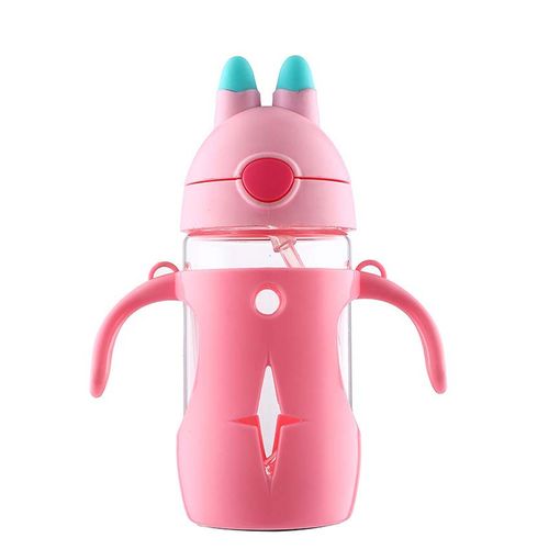 Generic 300ml Baby Silicone Glass Milk Feeding Bottle Width Proof Milk Bottles Gift Baby Drinking Water Straw Handle Feeding Kids Cup(Pink Rabbit Ear)300 ml bébé Silicone verre lait biberon largeur preuve bouteilles de lait cadeau bébé eau potable