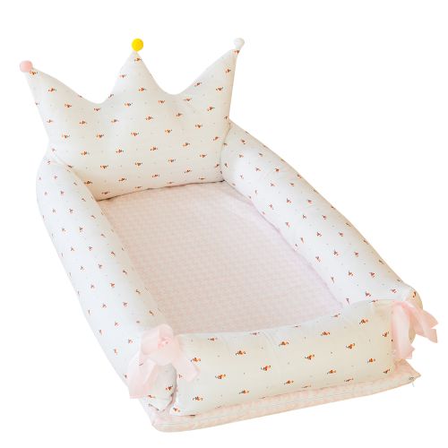 Generic Crown Baby Crib for Bed Portable All in one Infant Co-Sleeping Bassinet Cradles Lounger Newborn Nest 100% Cotton Super Soft Breathable Washable With Quilt Pillow White Flamingo