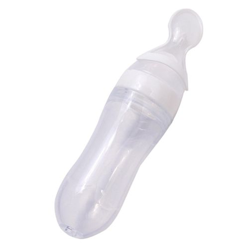 Generic Silicone Baby Feeding Bottle With Spoon Food Supplement Rice Cereal Bottle Baby Squeeze Spoon Silica Gel Spoon 90ml(White)Silicone bébé biberon avec cuillère complément alimentaire riz céréale bouteille bébé presser cuillère Gel de silice c