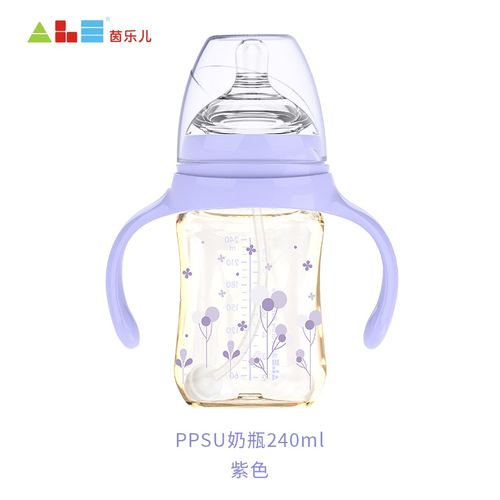 Introduction: Size: 10.5*14.7cm handle:with handle Color:pink blue green Shape:non-slip Capacity:180ml Nipple size:M material:PP Feature: 1.Petal nipple design 2.Unque design of bottle cover 3.Antiskid bottle body design with roughness bottle surface