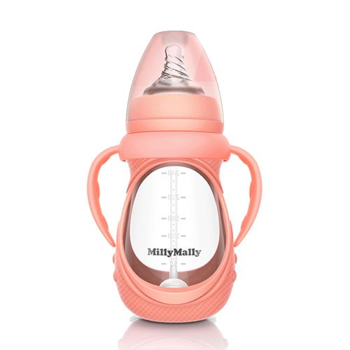 Brief Introduction: Our bottles are designed with a naturally shaped nipple to help your little one make a easy transition from breast to bottle. Feature anti-colic air vents to ensure air circulation to reduce unwanted colic, spit up, burping and gas. Come in 5 color and 2 capacity. Features: Nipple is made of 100 safe soft silicone, middle borosilicate glass bottle body, BPA free. Ultra wide-neck design allows easy cleaning by hand and easy pouring powder and water in. Nipple is deisgned to most closely mimic breastfeeding to reduce bottle rejection and nipple confusion issues. Anti-colic vents prevent unwanted air-intake and reduce colic, ergonomic handle is easy to grisp. Weighted straw allows babies and toddlers to drink from any angle, lets babies drink easily. Food grade silicone cup cover avoid falls and breaks. Specifications: Color: Green / Pink / Orange / Purple / Blue (Optional) Bottle Capacity: 150ml / 240ml (Optional) Material:Silicon + middle borosilicate glass For Age: 0-3 Year Package Size: 18 * 11 * 7cm / 7 * 4.7 * 2.8in Package Weight: 200g / 7.1oz Package List: 1 * Baby Bottle