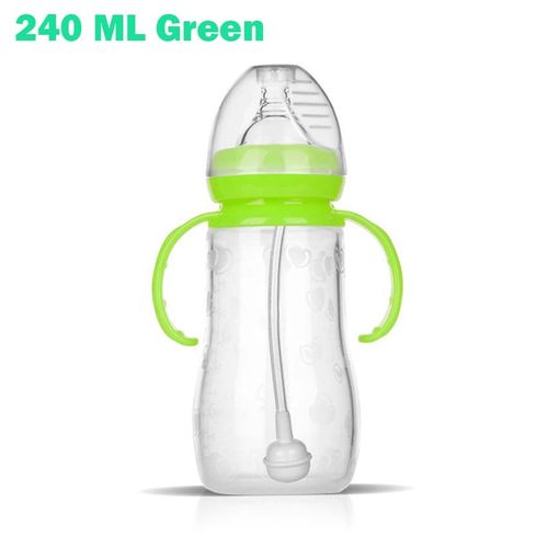Generic 520ml Baby Bottle Kids Cup Silicone Sippy Children Training Cups Cute Baby Drinking Water Straw Handle Feeding Bottle(Boy Blue or Green)520 ml biberon enfants tasse Silicone Sippy enfants formation tasses mignon bébé eau potable paille poig