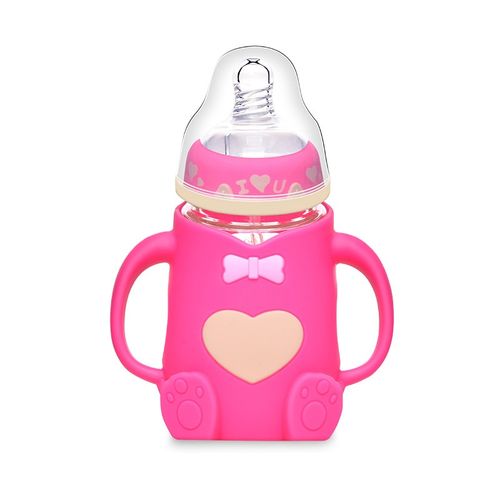 Description The body of this baby milk bottle is made of high quality PP, non-toxic and crystal clear. The nipple of this baby milk bottle is made of silicone, safe and comfortable for baby to use. This baby milk bottle with cartoon animal pattern has handle for baby to grasp easily. The capacity of this bottle is 300ml, fast and easy to clean, dishwasher safe, BPA free. Designed with wider base allows lips to close properly, minimizing air intake. Specification: Material: PP. Pattern Type: Cartoon. Flow Velocity: Medium Flow. Item: Nursing Bottle. Color: yellow, blue, pink Size: 19 * 6.5cm. Note: There might be a bit color distortions due to different computer resolutions. There might be size errors due to different computer resolutions. Package include: 1 * Wide caliber baby milk bottle.