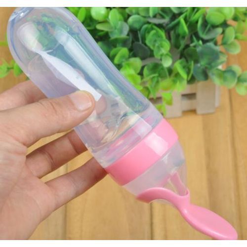 Generic 90ml Safety silicone baby bottle Infant kids feeding bottles With Spoon Rice Cereal Milk Paste Baby Food Supplement Bottle Cup(pink)90 ml sécurité silicone bébé bouteille infantile enfants biberons avec cuillère riz céréales lait pâte bébé