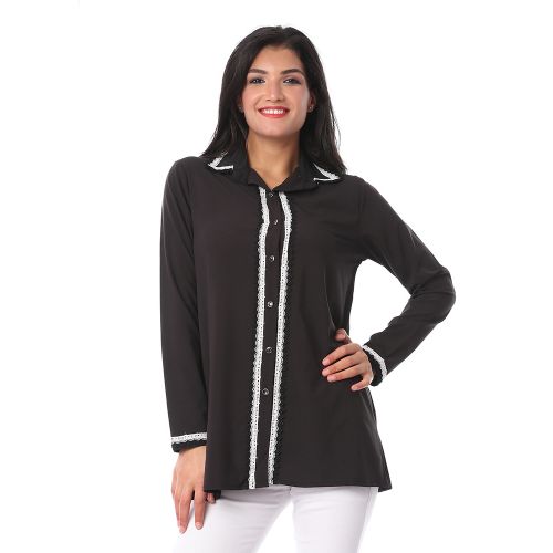 Punto D’Oro قميص حريمي شريطين دانتيل سوفت ليكرا – أسود