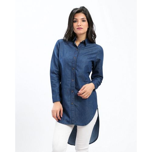 Punto D’Oro قميص حريمي جينز طويل من الخلف – أزرق غامق