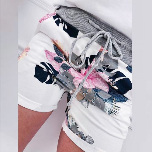 Fashion Hiaojbk Store Fashion Womens Casual Floral Print High Waist Bandage Pants Drawstring Shorts -Pink