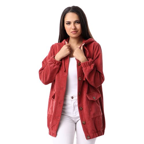Kady جاكيت طويل منقوش بنفس اللون – كافيه