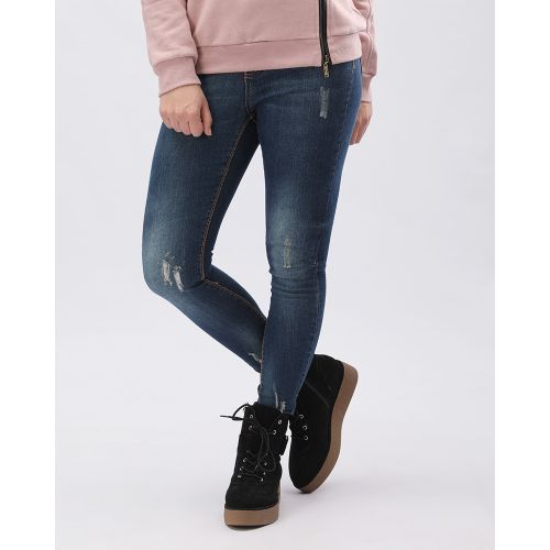 Esla بنطلون جينز بتصميم مخربش – جينز ازرق داكن
