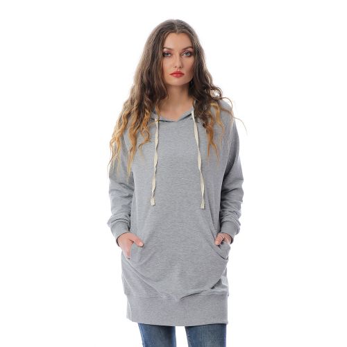 Kady سويت شيرت ساده طويل – رمادي باهت
