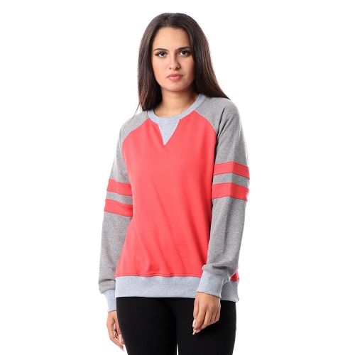 Kady Bi-Tone Round Neck Comfy Sweatshirt – Coral & Heather Grey