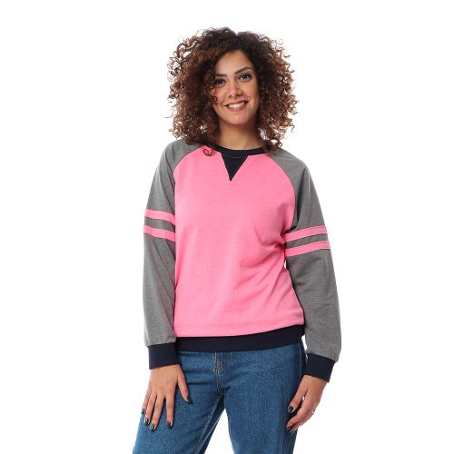 Kady Slip On Bi-Tone Round Sweatshirt – Pink & Grey