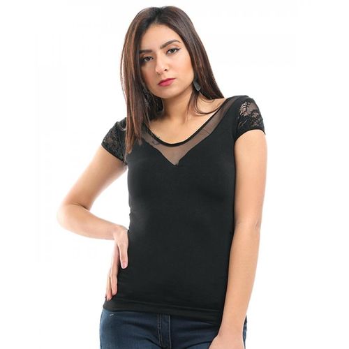 Generic بدي ربع كم دانتيل ياقة سبعة كنار تول – أسود