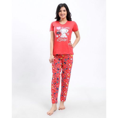 Generic طقم بيجامه مكون من بلوزة قصيرة مطبوع على الصدر وبنطلون – بطيخى