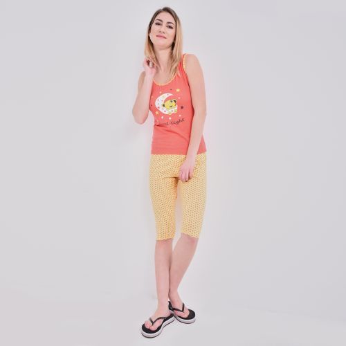 Lasso بيجامة كت مطبوع على الصدر وبرمودا منقوش- اصفر