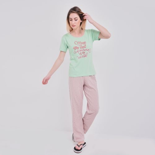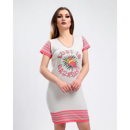 Lasso فستان للمنزل باكمام مطبوع ع الصدر- بينك وازرق فاتح