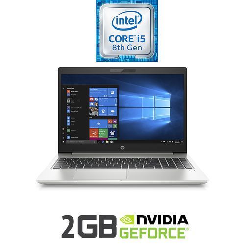 Designed for long-lasting performance, this stylishly designed HP 39.6 cm (15.6-inch) laptop has a long-lasting battery that keeps you connected, entertained, and productive all day. Speed through tasks, or sit back and socialize – with an Intel® processor and a rich display. Do it all, all day.Responsive and reliable performanceA laptop with the power to surf, stream, and do so much more with an Intel® processor. Plus extensive quality testing ensures that you can keep going…and going.Sleek. Stylish. Portable.A sleek and stylish design makes this eye-catching laptop easy to take anywhere. With its beautiful brushed keyboard and color-matched hinge, the smartly designed HP 39.6 cm (15.6-inch) laptop looks as good as it performs.HP WebcamWith a great webcam it\'s never been easier to stay in touch and get your work done. Video chat with the family while experiencing clear, smooth quality.8th Generation Intel® Core™ processorUpgrade performance with smooth system responsiveness and fast load times for an exceptional PC experience. Supporting resolution up to stunning 4K, stream premium content, or even create your own.Hard drive storageDon\'t worry about growing your collection of digital movies, songs, and pictures. With massive storage options you can save it all, and still have plenty of room left over.High-definition displaySee your digital world in a whole new way. Enjoy movies and photos with the great image quality and high-definition detail of 1 million pixels.NVIDIA® GeForce® MX130 graphicsTurns everyday laptops into amazing performers. Get higher graphics performance for more fluid casual gaming. NVIDIA Maxwell™ architecture also provides fast, smooth HD photo and video editing.DDR4 RAM optionsDesigned to run more efficiently and more reliably at faster speeds, DDR4 is the future of RAM. With its higher bandwidth, everything from multi-tasking to playing games gets a performance boost.USB 3.0 connectorWith the world\'s most popular USB connection, you can easily connect any of your existing USB devices and experience data transfer speeds ten times faster than USB 2.0.Dual front-facing speakersPump up the volume to your favorite music, movie or game. When your audio is directed towards you, nothing comes between you and your entertainment.HP Fast ChargeWhen your laptop is low on power, no one has time to wait hours to recharge. Power down your device and go from 0 to 50 charge in approximately 45 minutes.SD and Micro SD card readerSimply insert an SD or Micro SD card and increase your device\'s storage for more movies, photos, and music, or easily access any content you have stored on an existing card.ProcessorIntel® Core™ i5-8265U (1.6 GHz base frequency, up to 3.9 GHz with Intel® Turbo Boost Technology, 6 MB cache, 4 cores)Memory8 GB DDR4-2400 SDRAM (1 x 8 GB)Display39.6 cm (15.6-inch) diagonal HD SVA anti-glare WLED-backlit (1366 x 768)GraphicsNVIDIA® GeForce® MX130 (4 GB GDDR5 dedicated)StorageHard drive: 1 TB 5400 rpm SATAOptical drive: DVD-WriterInputs and Outputs2 x USB 3.1 Gen 1 (Data transfer only)1 x USB 2.01 x HDMI 1.4b1 x RJ451 x headphone/microphone comboExpansion slots1 x multi-format SD media card readerAudioDual speakersCameraHP Webcam with integrated digital microphoneKeyboardFull-size island-style keyboard with numeric keypadPointing deviceTouchpad with multi-touch gesture supportWireless/NetworkingNetwork interface: Integrated 10/100/1000 GbE LANWireless: 802.11b/g/n/ac (2×2) Wi-Fi®Bluetooth® 4.2SoftwareOperating System: FreeDOS 2.0PowerBattery type: 3-cell, 41 Wh Li-ionPower supply: 65 W AC power adapterDimensions and WeightDimensions (W x D x H): 37.6 x 24.6 x 2.25 cmWeight: 1.86 kg