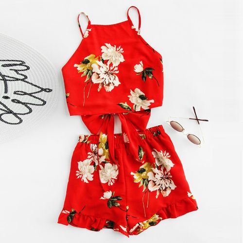 Posted on February 27, 2020Fashion Whiskyky Store Women’s Boho Ruffle Floral Print Spaghetti Strap Crop Cami Top With Shorts Sets-Red Women\'s Boho Ruffle Floral Print Spaghetti Strap Crop Cami Top With Shorts Sets السعر :جنيه 558