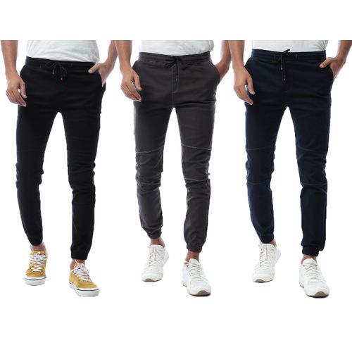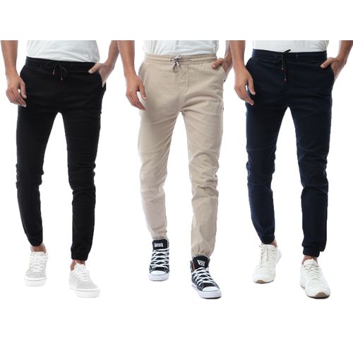 Andora 3 بنطلون باجي ساده برباط للتضييق – اسود وكحلي ورمادي داكن