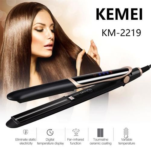 Kemei Km-2219 مكواة لفرد شعر إحترافية مستقيم وكيرلي- أسود