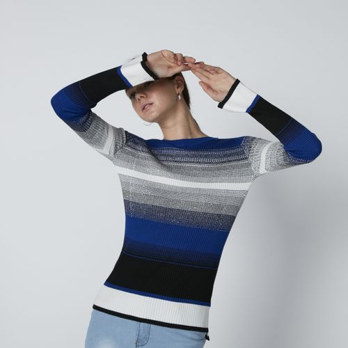 Splash سويتر مقلّم بياقة قارب وأكمام طويلة