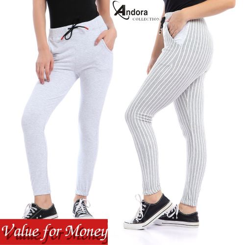 Andora مجموعة من بنطلون مخطط وبنطلون ساده – رمادي باهت فاتح