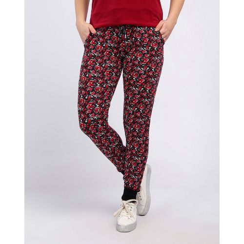 Andora بنطلون فلورال سهل الارتداء – اسود وفوشيا
