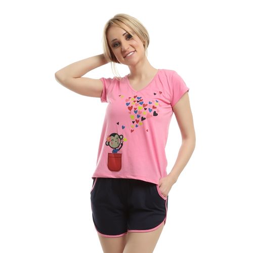 Andora Set of V-neck T-shirt & Short Shorts – Pink & Dark Blue