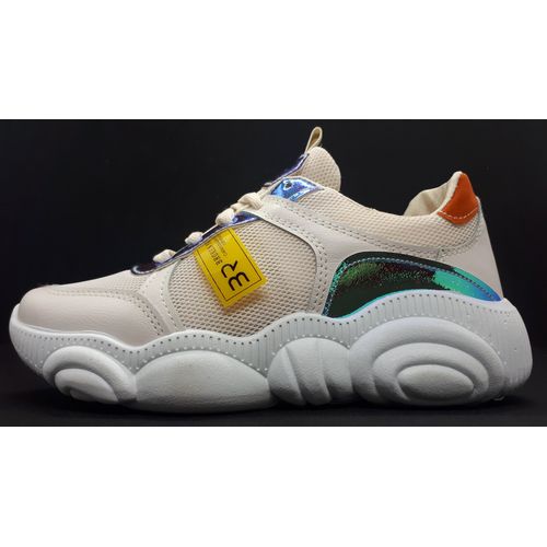 Fashion حذاء جلد و قماش برباط – اوف وايت