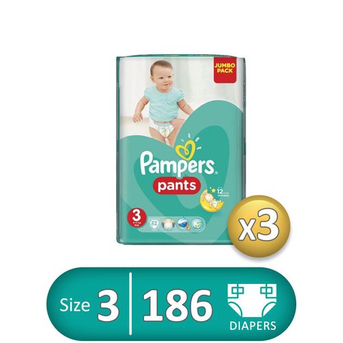Pampers حفاضات Baby Pants – مقاس 3 – 3 عبوات – 186 قطعة