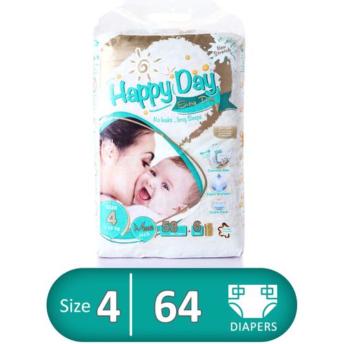 Happy Day Large Diapers – Size 4 – 58+6 Pcs