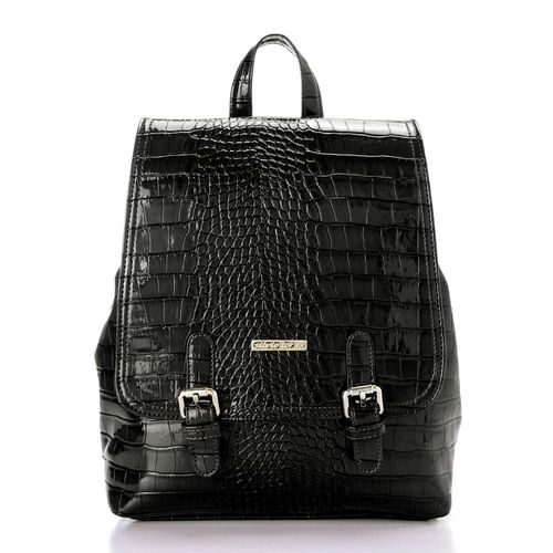 Silvio Torre شنطة ظهر جلد بنقشة جلد التمساح – اسود