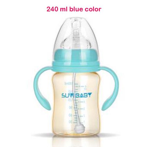 26933 Shop sell like HOT cakes 【Name】 Standard caliber 250ML PP baby bottle [Capacity] 250ML 【Configuration】 breast milk real liquid silicone pacifier + handle + straw combination (straw, sucker, straw ball) 【Material】 bottle – food grade PP does not contain bisphenol A, straw – silicone, sucker-PP, straw ball – metal outsourcing PP 【Color】 blue / powder Random pattern Features: Bottle: the use of food grade polypropylene (PP) environmentally friendly raw materials, light, easy to clean, high strength, with not afraid of dropping, long life, can be high temperature to 120 ° unchanged soft, no deformation Micro-curved bottle design: meet the hand-shaped arc design, natural smooth, easy to grasp, to prevent slipping Dust cap: bottle with a bottle to avoid the nipple to receive pollution, the baby to use more at ease Food-grade liquid active silicone nipple: soft and flexible, non-toxic and tasteless, high temperature non-stick non-swelling, not easy to tear, safety and health, the baby to allow natural and smooth Straw combination: baby do not have to hold the bottle, any posture are free to drink freely. Not only able to exercise the baby to their own suction, improve lung capacity, and can reduce the air inhalation, spit milk, choke the milk and so on Bottle printing patterns: the use of safe ink, non-toxic harmless, lead-free metals and other carcinogens, printing patterns bright color, enduring Precautions: Wash and disinfect the bottle before use, place it in the health office after cleaning, avoid contact with insects and bacteria, protect your baby\\'s health Bottle supporting the milk can not rotate too tight or too loose, so as not to cause the nipple deformation or leakage of the normal function of the nipple. When cleaning the bottle, do not use abrasive or other materials such as abrasive, so as to avoid the bottle wear Please check the pacifier and bottle regularly, once damaged or deformed, in order to baby health, please promptly replaced. Infants and young children should be taken care of by adults and used, pacifiers can not be used to play mouth or pacifier Love tips: It is recommended to boil and boil water above 70 ° C If the vertical up and down the bottle may cause the bottle of liquid spray, causing burns Winter milk or milk when the ambient temperature is low, because the bottle itself is low temperature, such as direct injection of boiling water, may lead to bottle break After the milk, if the liquid temperature is too high is not suitable for baby drinking cover bottle cover, with water or cold water to the liquid temperature of the bottle to the appropriate temperature Please do not let the water directly rushed to the bottle and bottle, please part of the bottle from the bottle of water Please avoid using a microwave oven to rinse the milk or heat the rinse with water