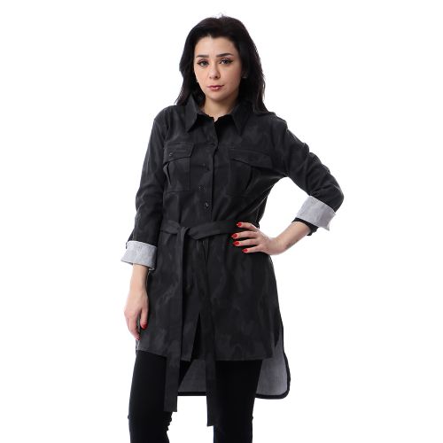 Punto D’Oro قميص حريمي شريطين دانتيل سوفت ليكرا – أسود